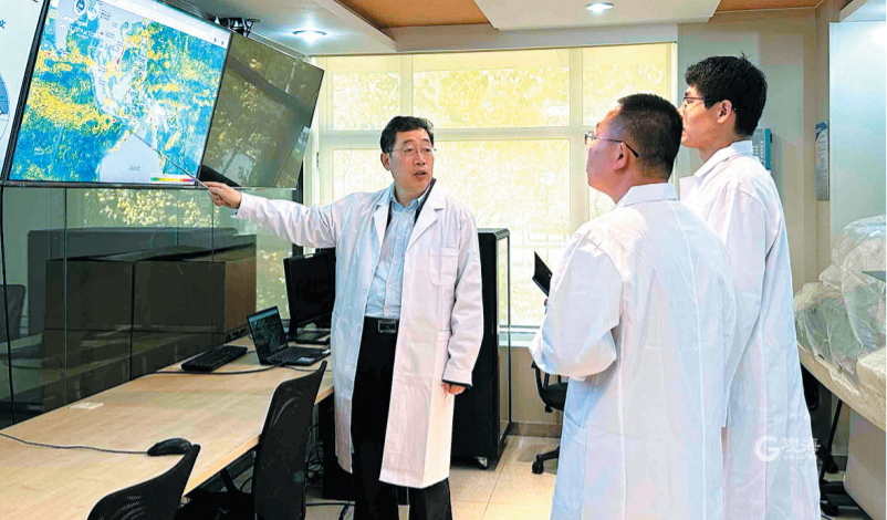 乔方利(左一)带领团队构建了国际上首个海浪-潮流-环流耦合模式,将海洋模拟与预报误差减少了80%以上。